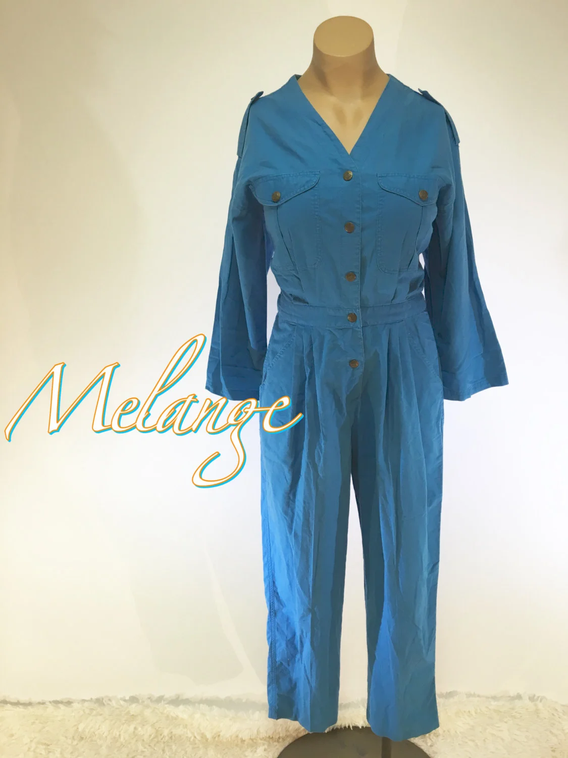 Vintage Exclusive Blue Button Down 1980s Jumpsuit with Pockets