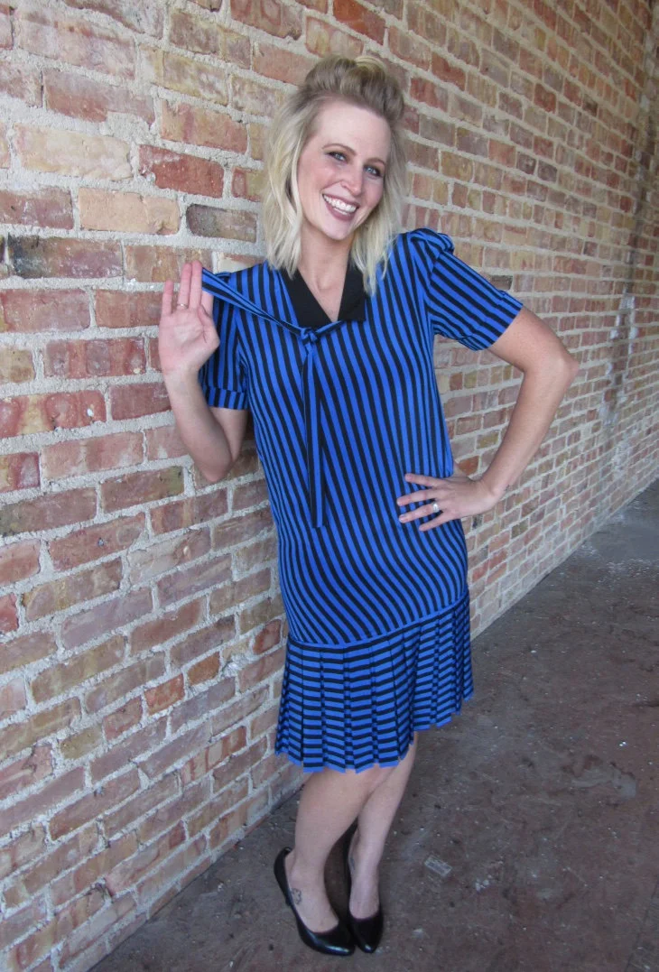 This dress is so fun and Playful. With its striped pattern and necktie, this dress is sure to impress.