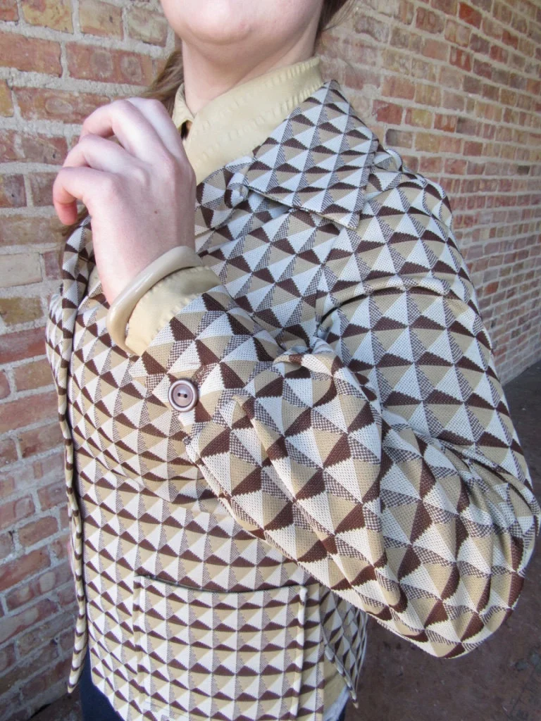 Geo Pattern Jacket is perfect for Work and Street Style. Pair with a vintage blouse or keep unbuttoned over a T-shirt to create your signature mélange style.