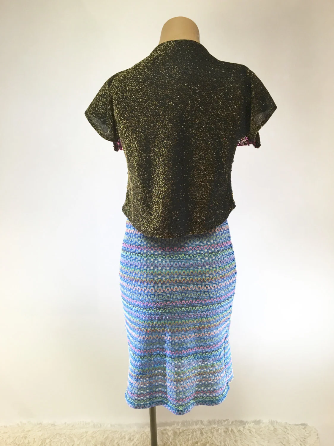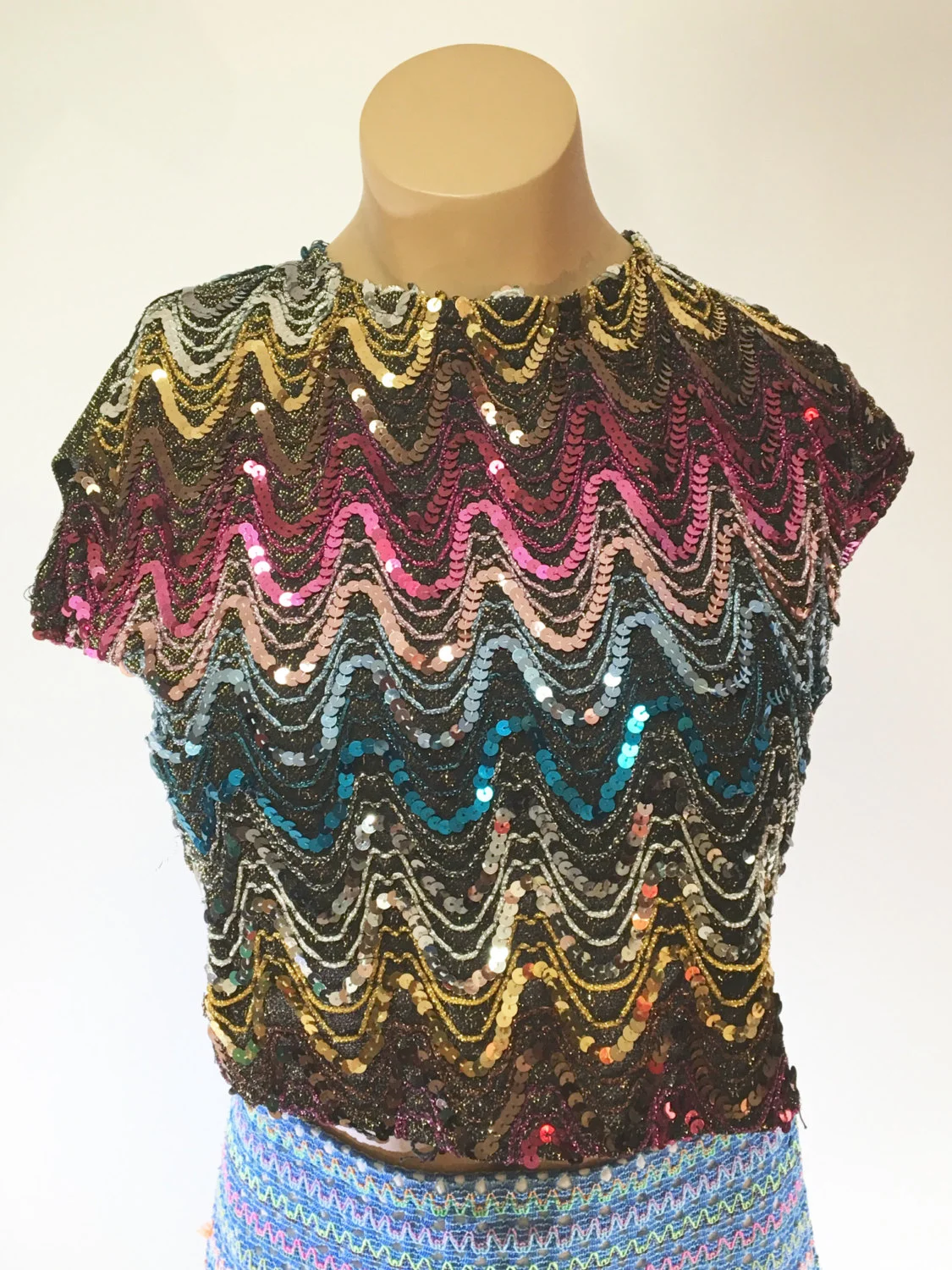 Vintage Exclusive Multi Color Sequin Crop Top With Gold Detailing